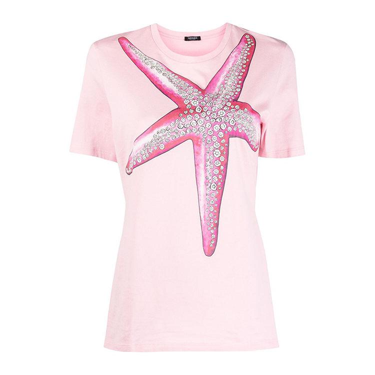 VERSACE/範思哲21年春夏女士服裝女裝女性粉色女士短袖T恤A89352 A228806 1P590