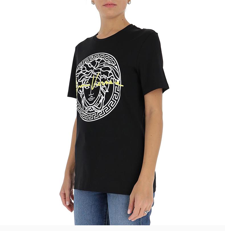 VERSACE 范思哲 女士 服装 21春夏 黑色圆领美杜莎圆领图案棉质T恤 女士短袖T恤