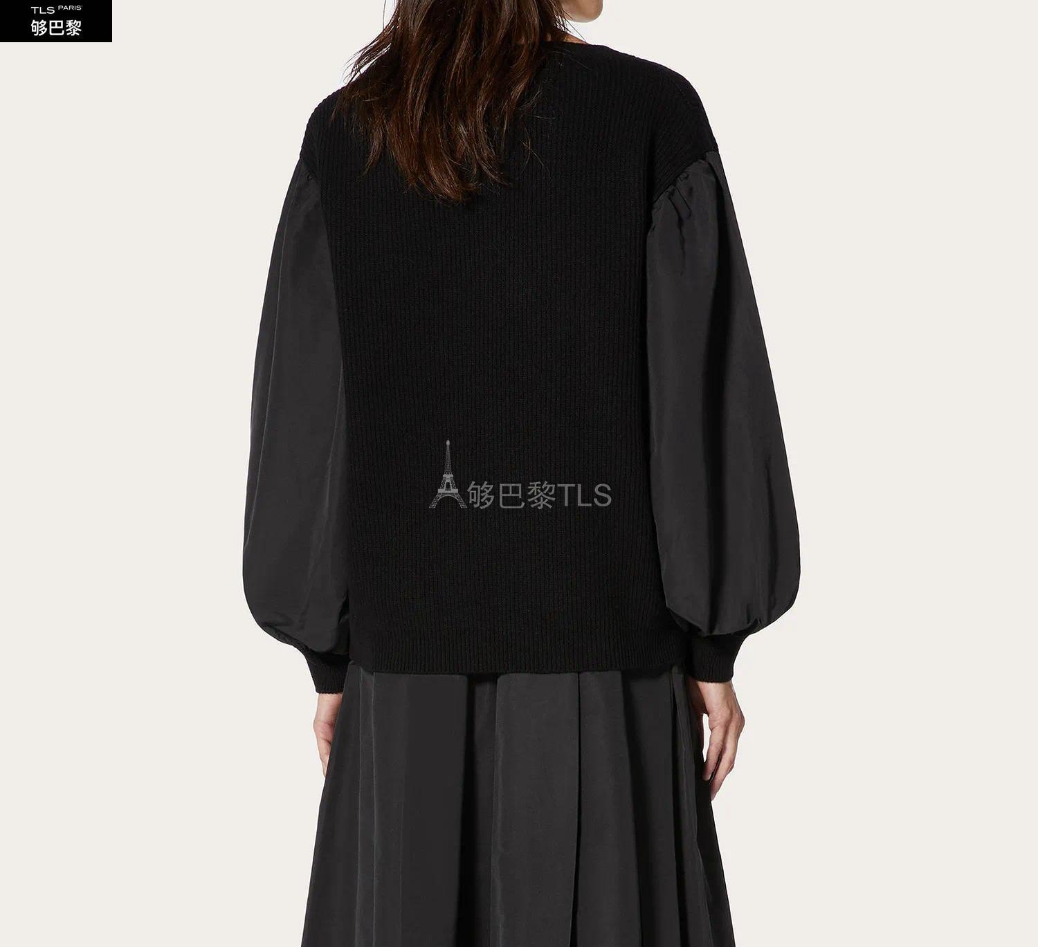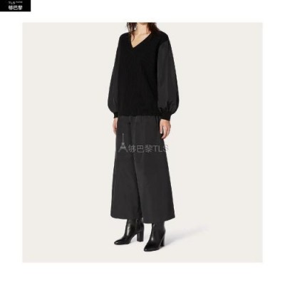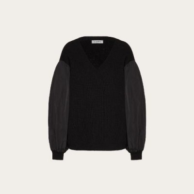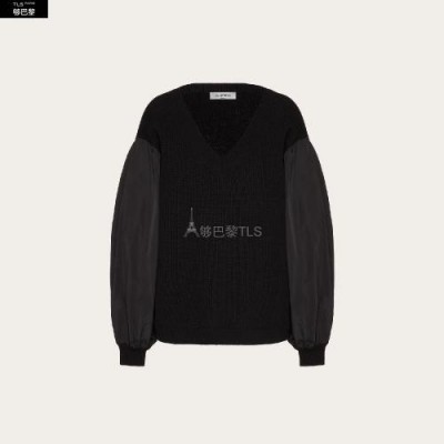 • 【包邮包税】 VALENTINO华伦天奴 21年春夏 女士 针织衫 羊绒羊毛和细罗缎卫衣 TB3KC10E59G0NO 预定商品1-3周发货