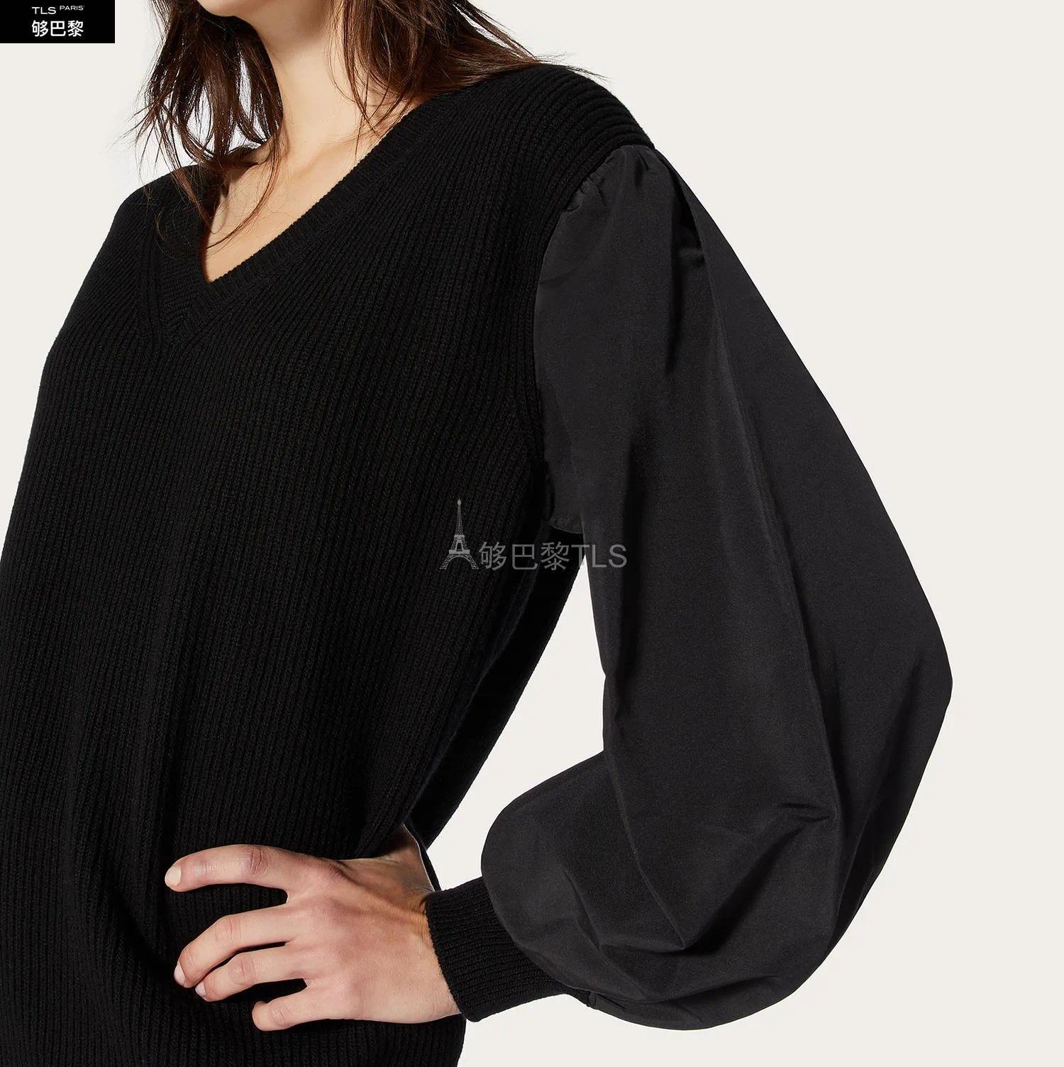 Pull en laine, cachemire et micro faille - Manches bouffantes en micro faille et encolure en V - Longueur : 64 cm - Laine et cachemire (70 % laine, 30 % cachemire), micro faille (54 % coton, 46 % polyester) - Modele non double - Le mannequin mesure 176 cm et porte une taille 40 - Fabrication italienne.