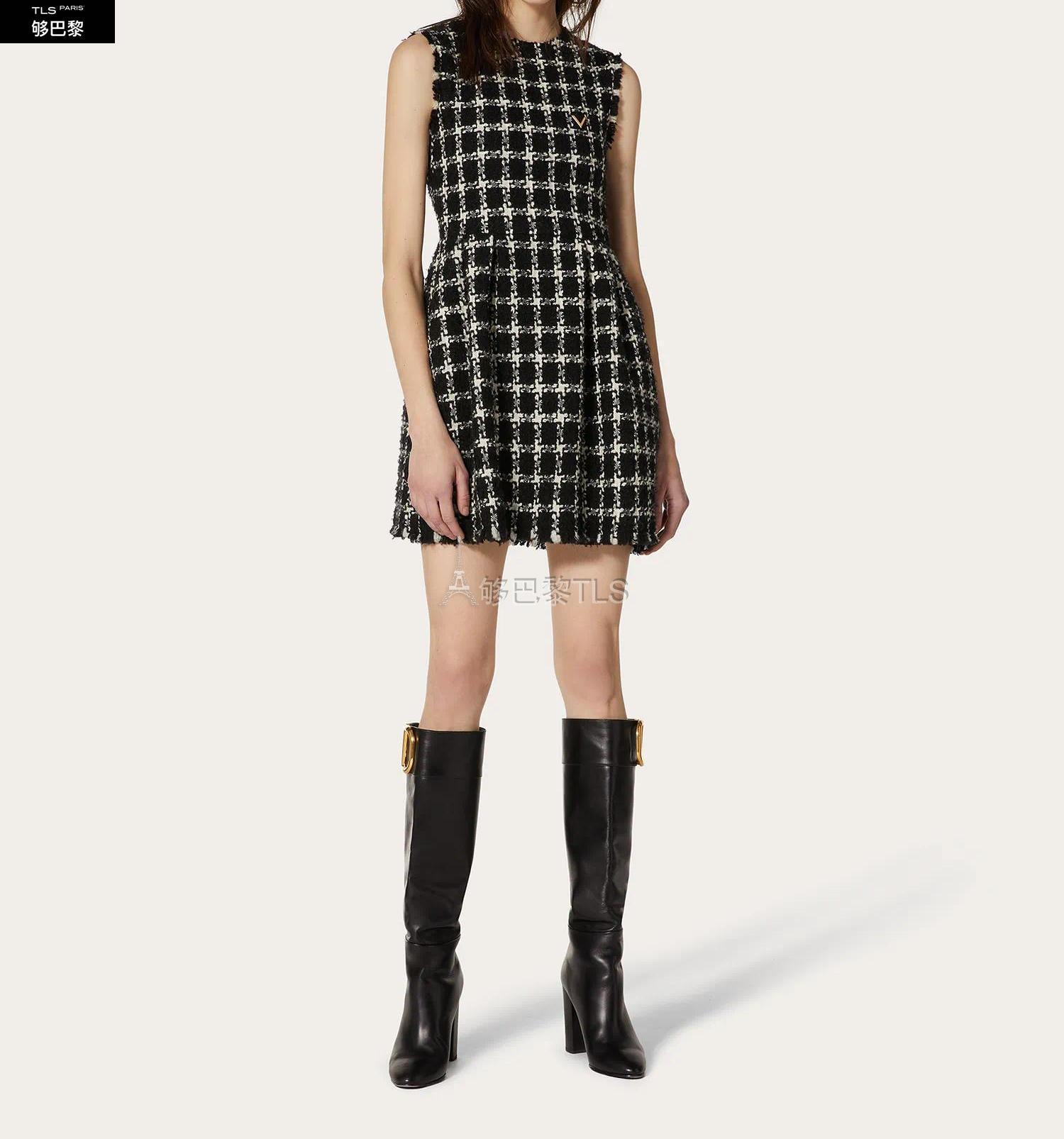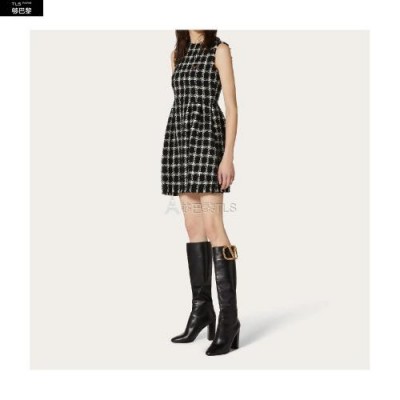 • 【包邮包税】 VALENTINO华伦天奴 21年春夏 女士 连衣裙 VGOLD 格子花呢短款连衣裙 UB3VASY55LC0NA 预定商品1-3周发货
