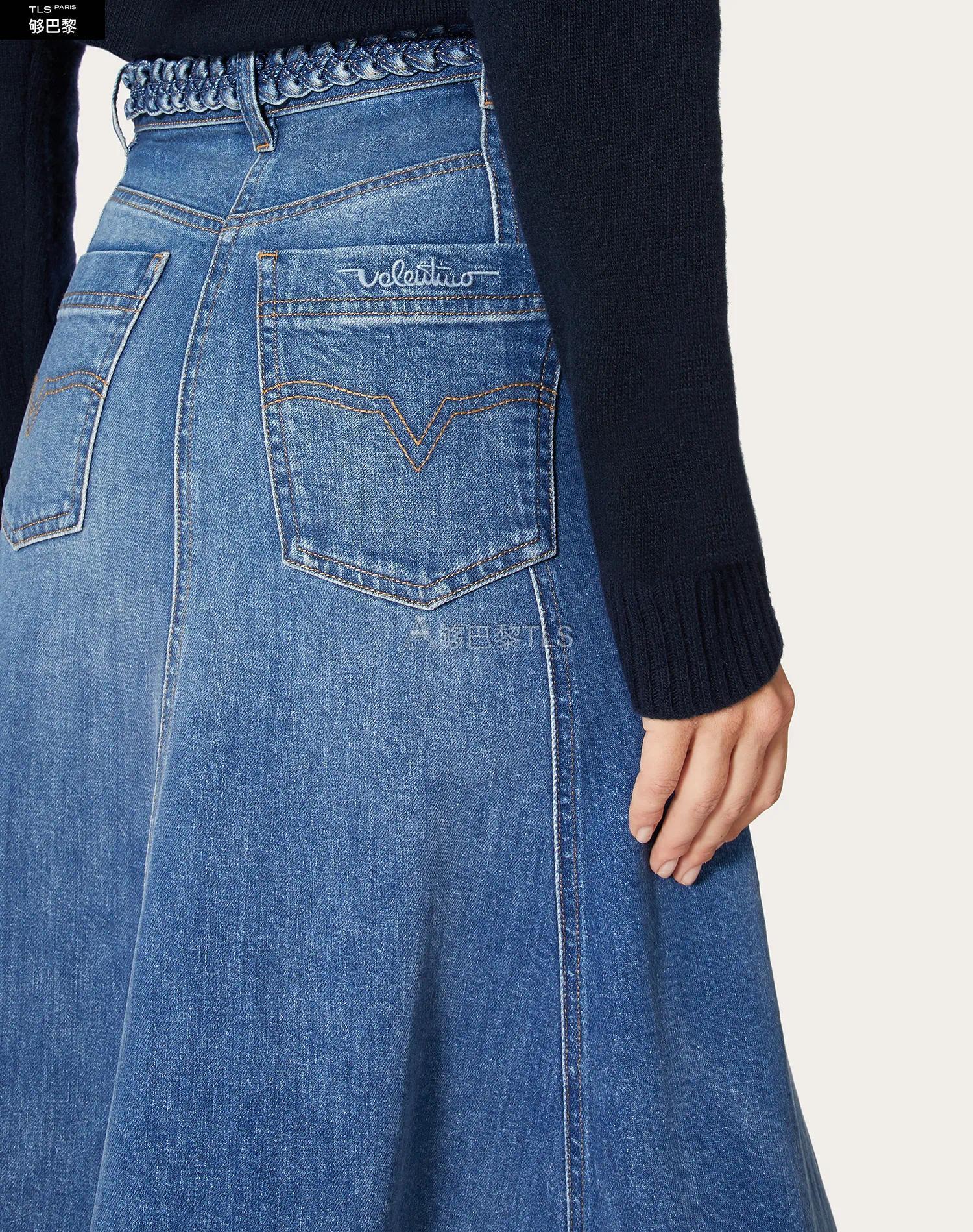 【包郵包稅】VALENTINO華倫天奴21年春夏女士牛仔褲彈性牛仔半裙UB3DD10G1LL558預定商品1-3周發貨